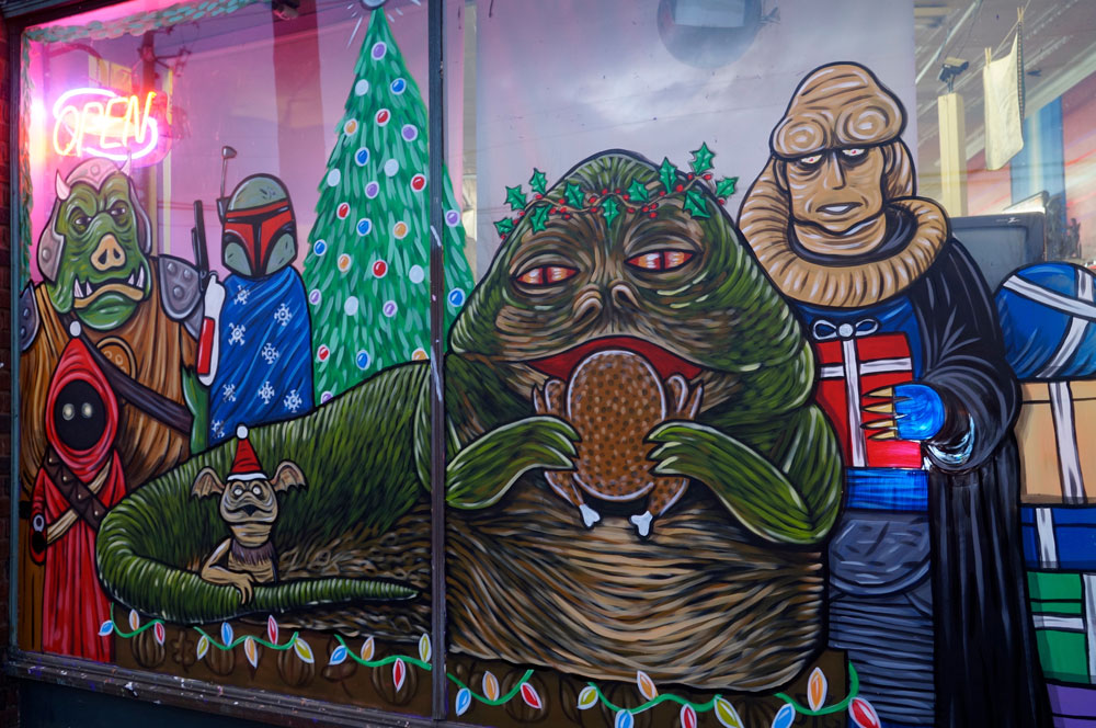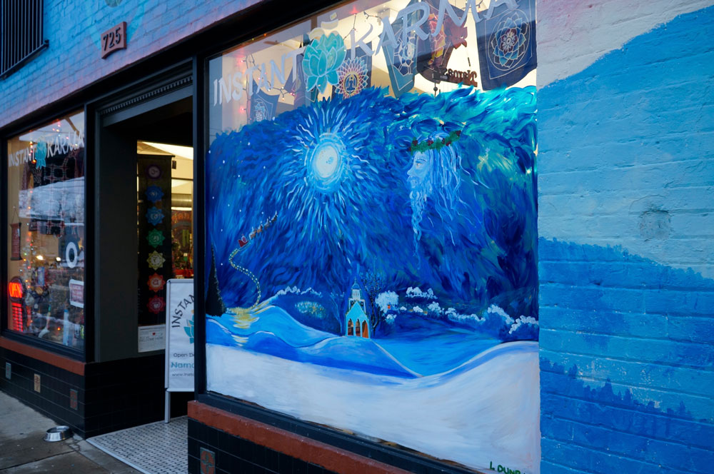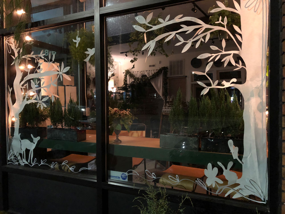 2017 winners (tie): Instant Karma and Fleetwood’s - Favorite Austen Mikulka Painted Window