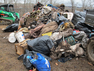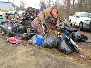 With the help of a couple of front end loaders, a mountain of trash has been removed. The River Arts District says THANK YOU to this rather large assembly of hands, making quick work, for the benefit of our entire community.
